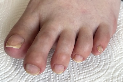 こちらの方は、足の爪の横線と、爪割れでの出血でお悩みでした。